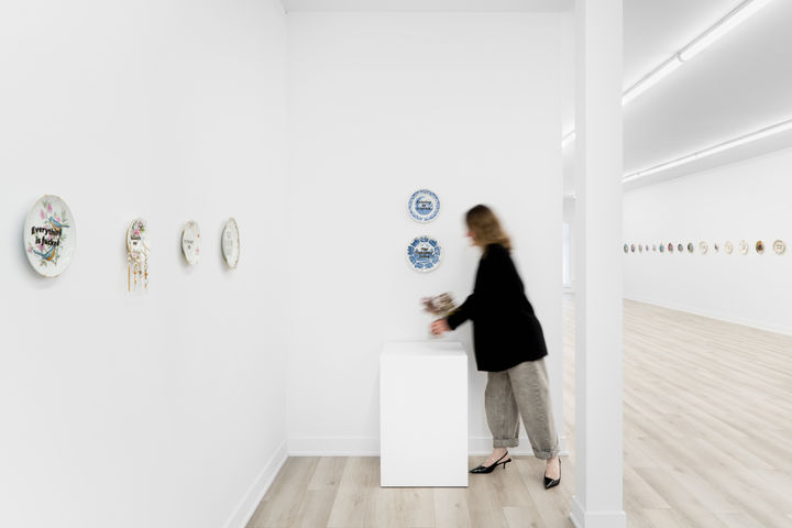By reassembling or adorning porcelain pieces with jewelry, she reflects on our efforts to be noticed, our disguises, and our longing for attention. Stepping away from the collective noise of the city, the artist gains perspective and rediscovers a fresh, quieter gaze, still attentive to human dynamics. With humor, much like the visitor moving through the exhibition, she reads the room.